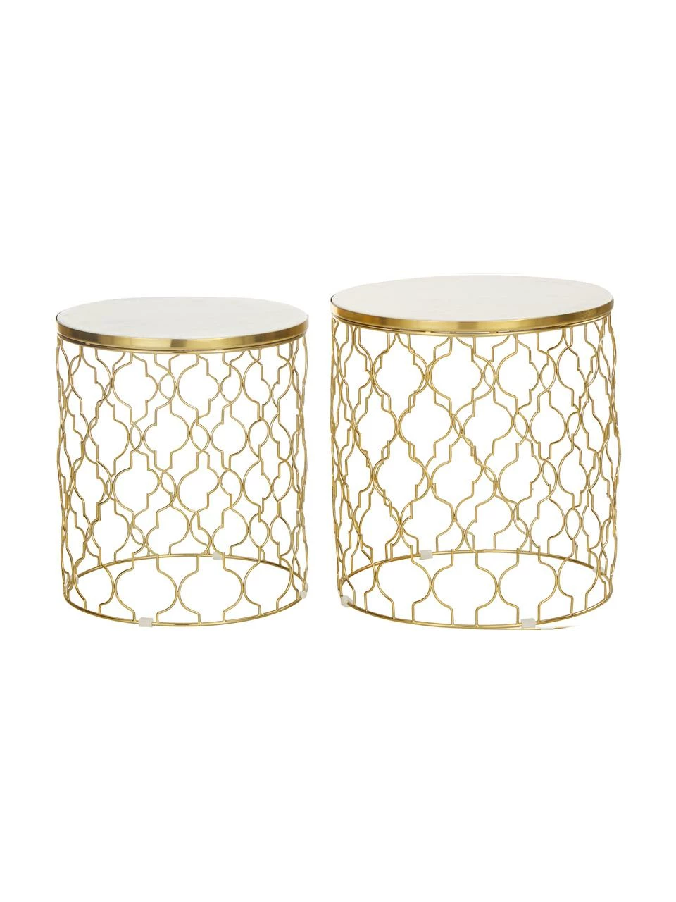 2 tables d’appoint en marbre de tailles différentes, avec plateaux en marbre naturel