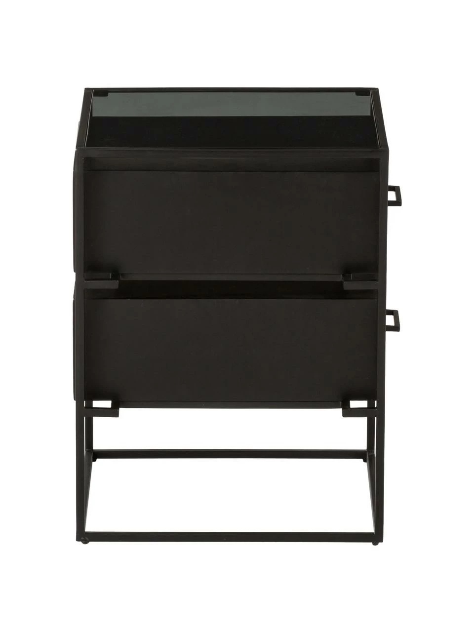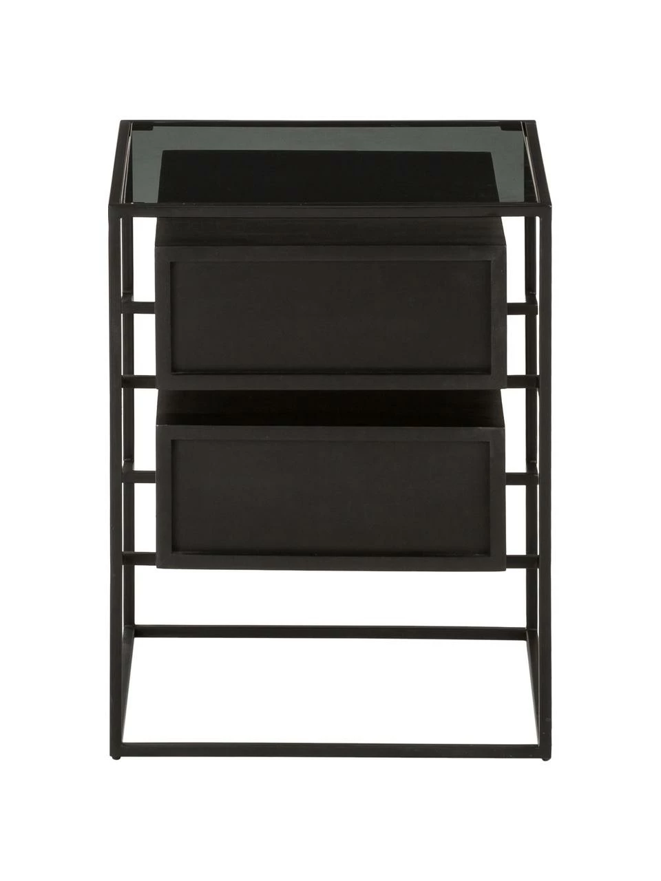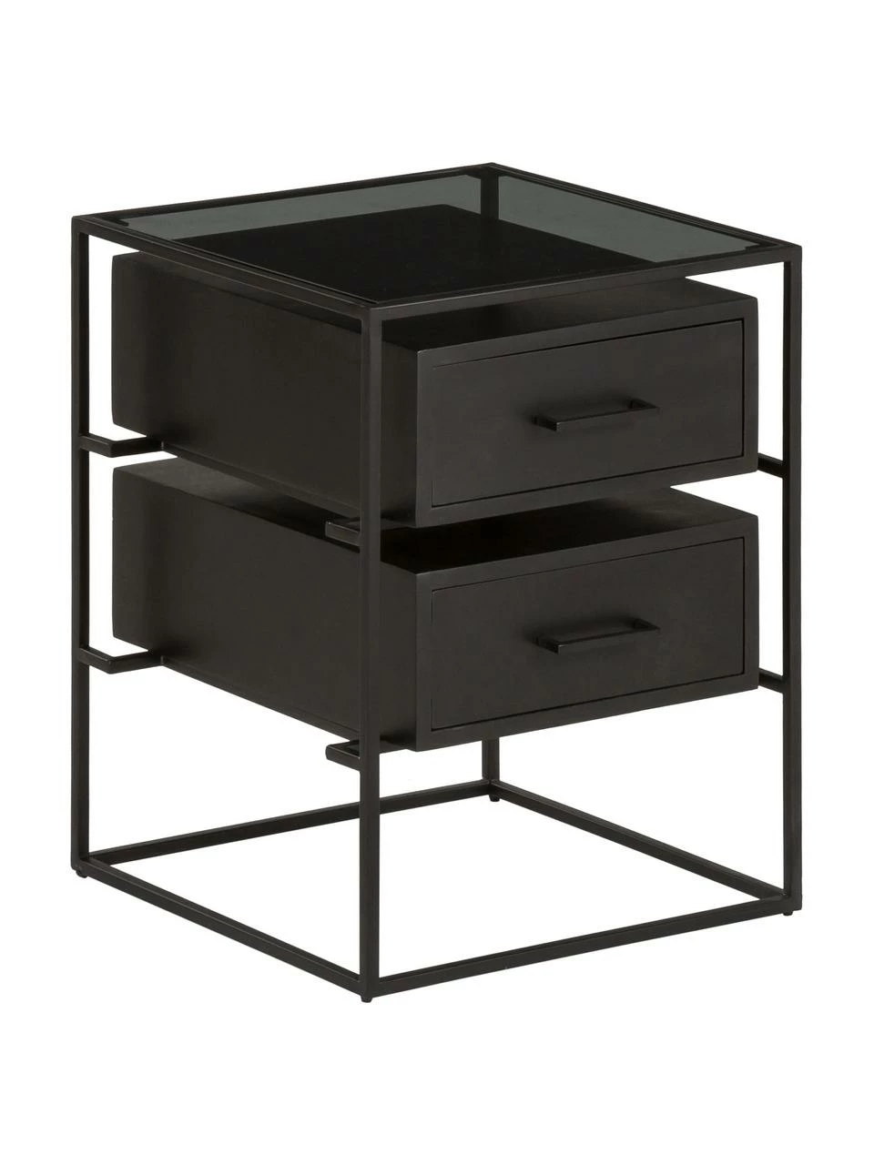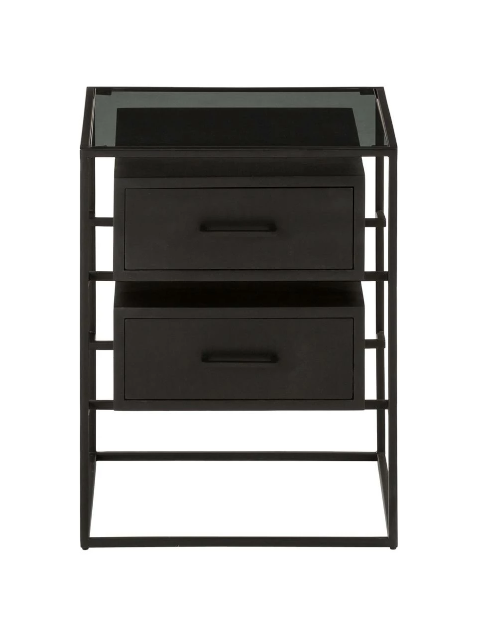 – Table de chevet avec 2 tiroirs et une tablette en verre