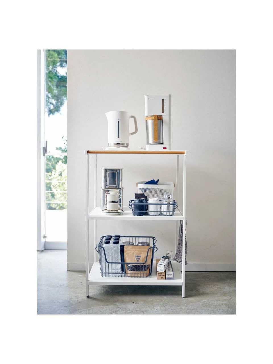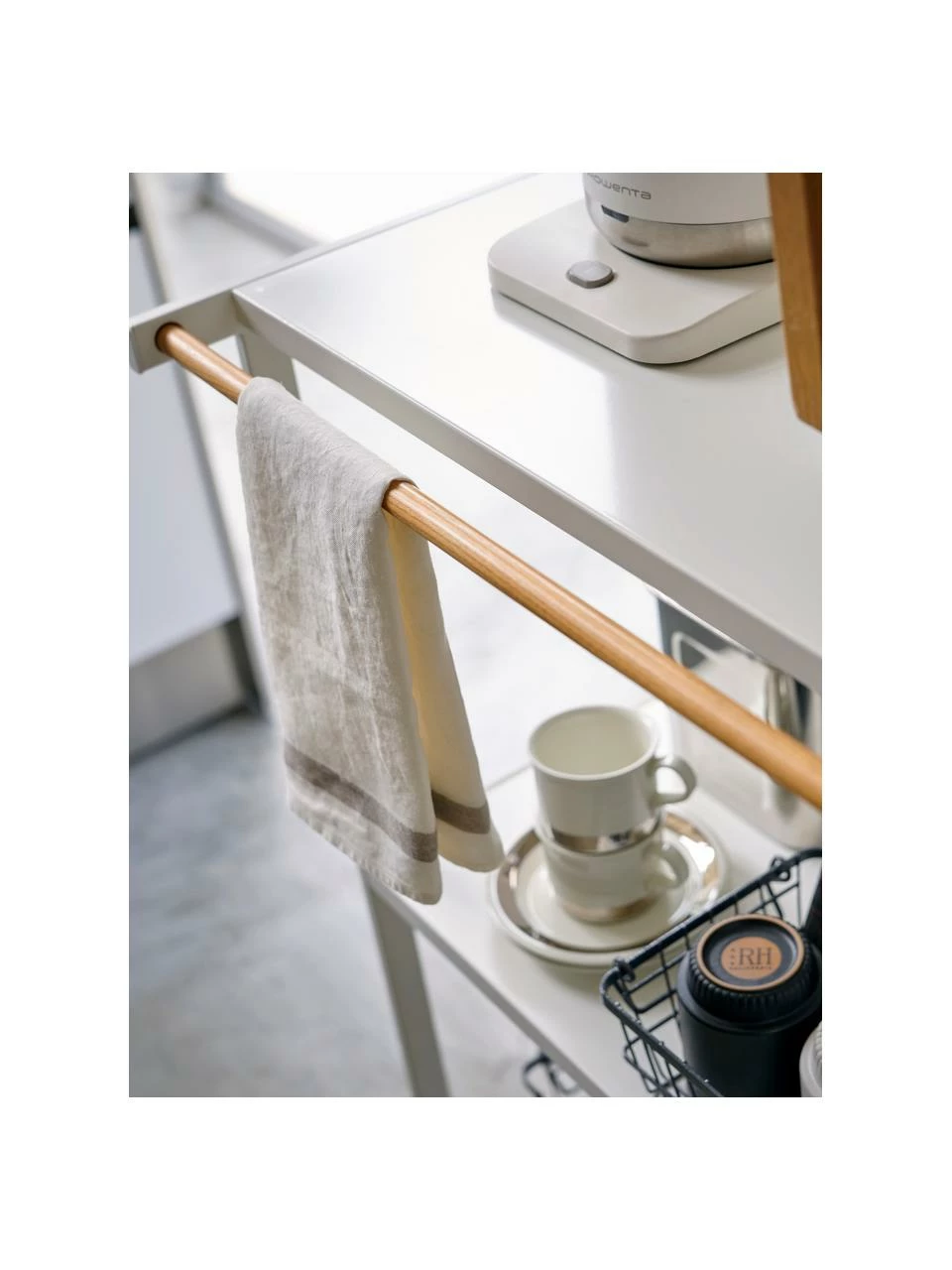 Étagère avec 3 tablettes, poignée en bois et 5 crochets qui peuvent être fixés sur les côtés de l’étagère du milieu